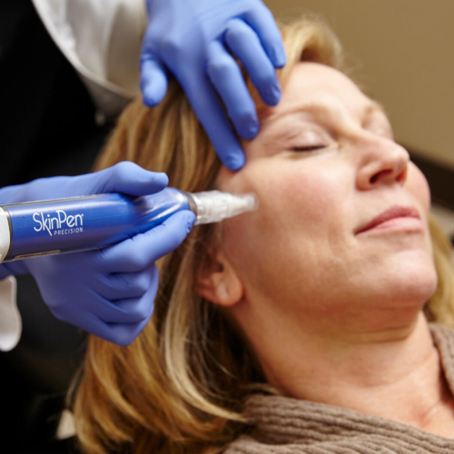 Our most effective options include microneedling, PRF therapy, chemical peels, and laser rejuvenation for skin renewal. For dynamic wrinkles, neurotoxin injections like Botox® or Dysport® offer subtle, natural smoothing.